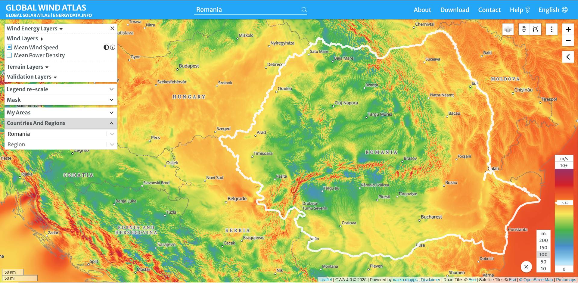Wind Map of Romania -